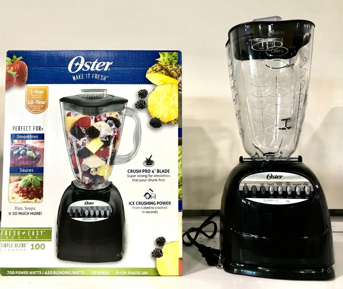 The Oster® Classic Series Blender delivers dependable power and reliable performance for all your blending needs. Featuring a robust 700 Power Watt motor, this blender effortlessly crushes ice, handles frozen fruit, and smoothly blends everything from morning smoothies to soups and sauces.