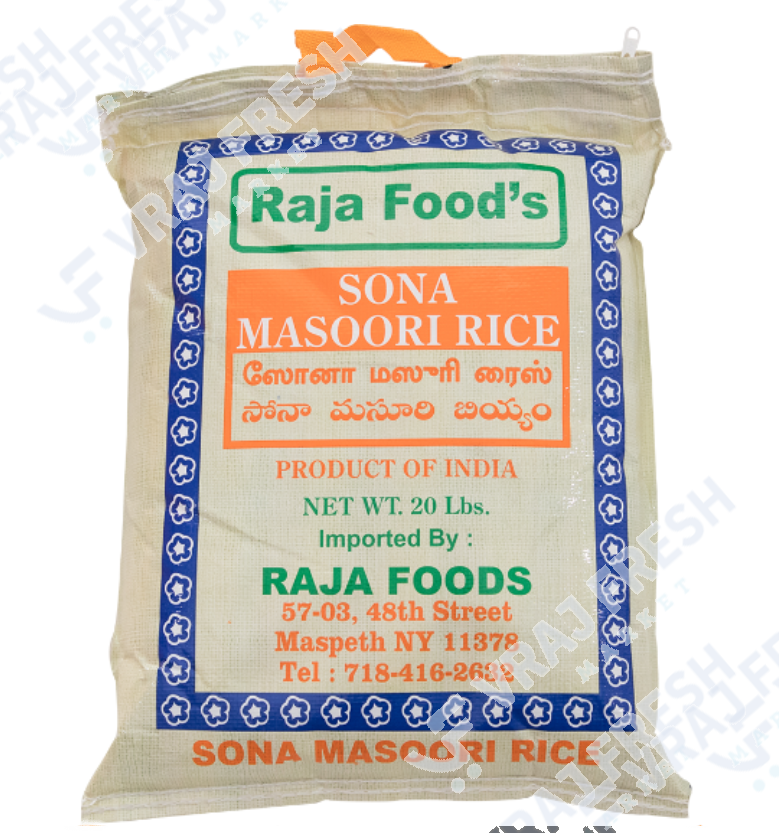 Raja Foods Premium Sona Masoori Rice (20 LB) – Light & Aromatic